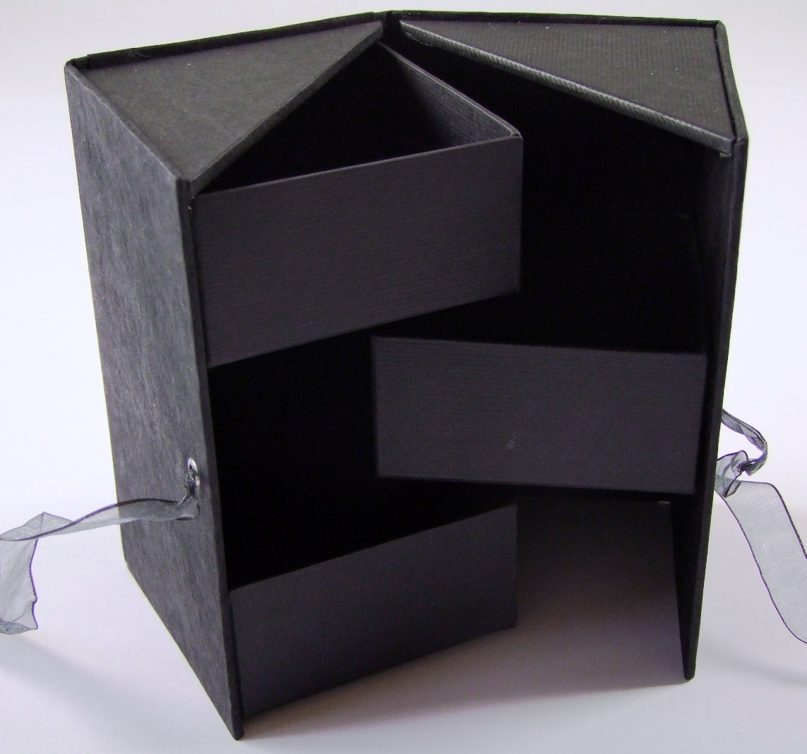 Multi-Box schwarz 9*9*16 cm hoch, mit 3 schwarzen Fächern Innen und mit handgeschöpftem
